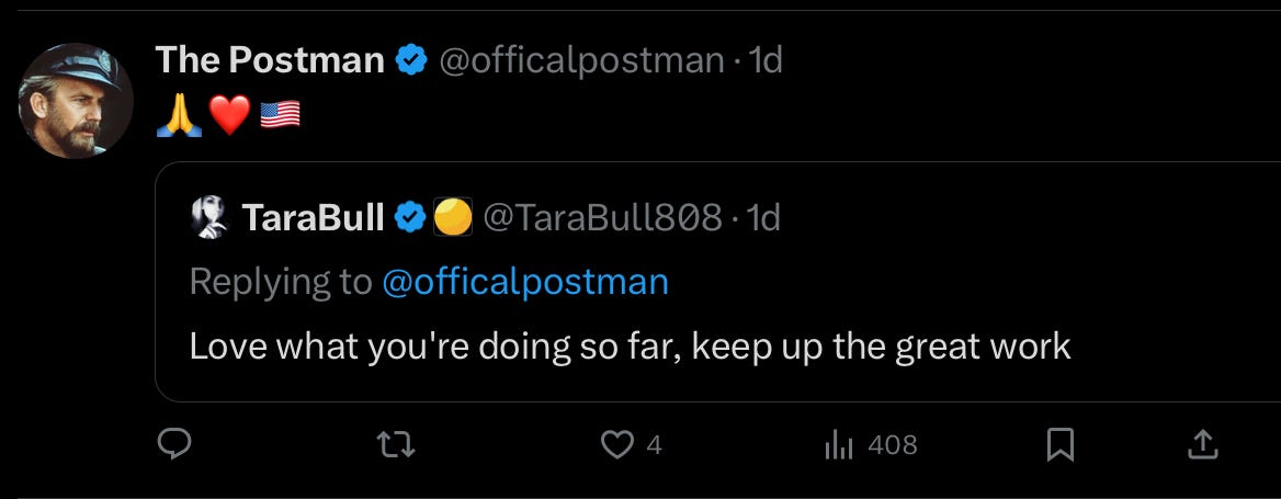 This being the case, you can imagine my surprise when a number of my more astute colleagues in the OSINT community informed me that a rather unsavory engagement-farming MAGA influencer was now running his own brand new version of “The Postman” - and had apparently even used the likeness of my profile picture.